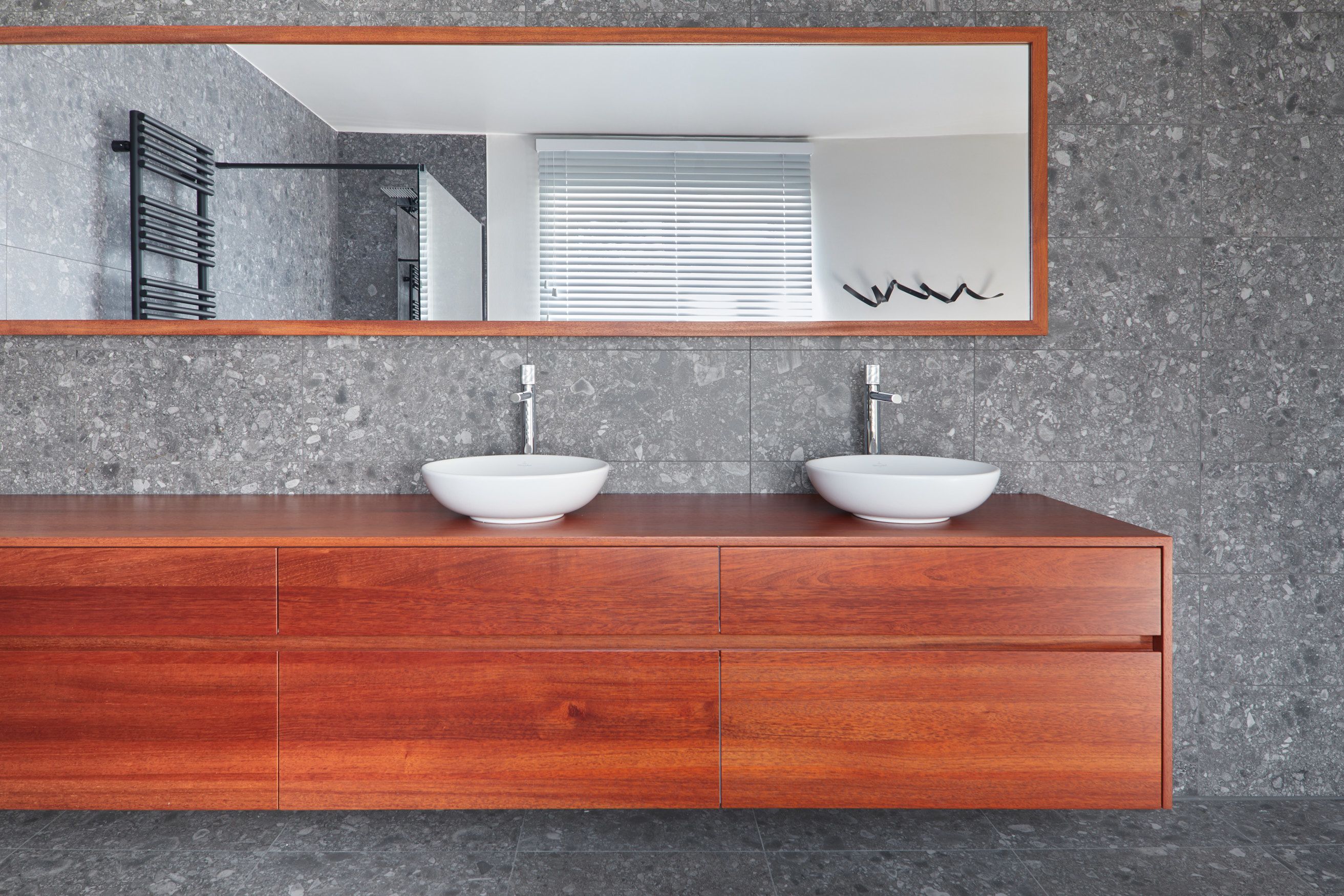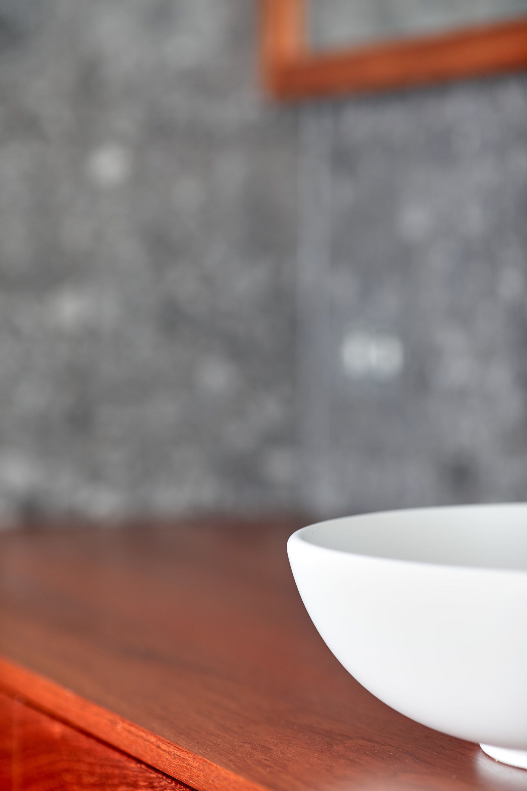 Projet à l’aspect brut et monovolume mis en valeur par l’utilisation d’afzélia massif, utilisé habituellement pour les châssis et portes extérieurs.